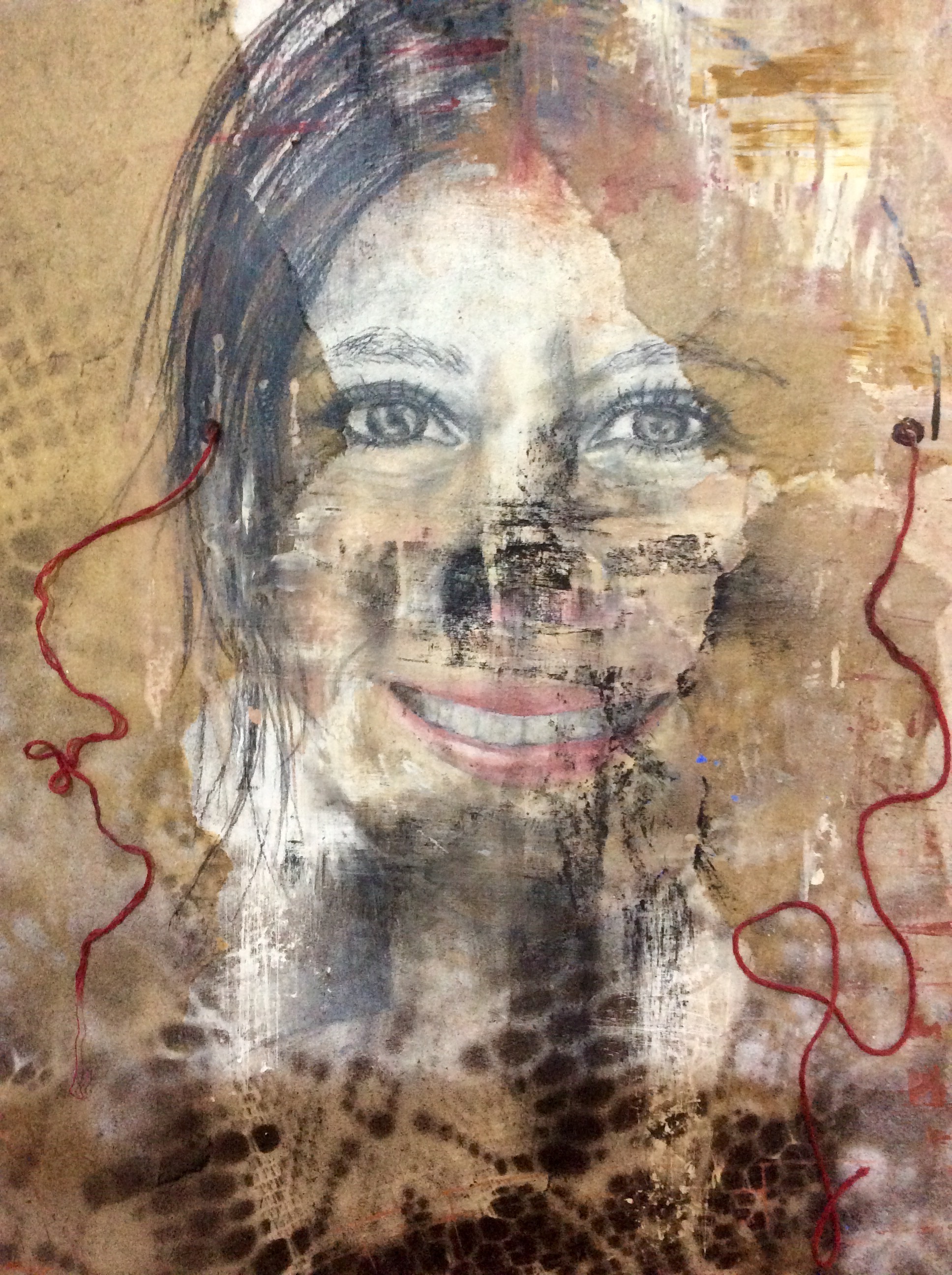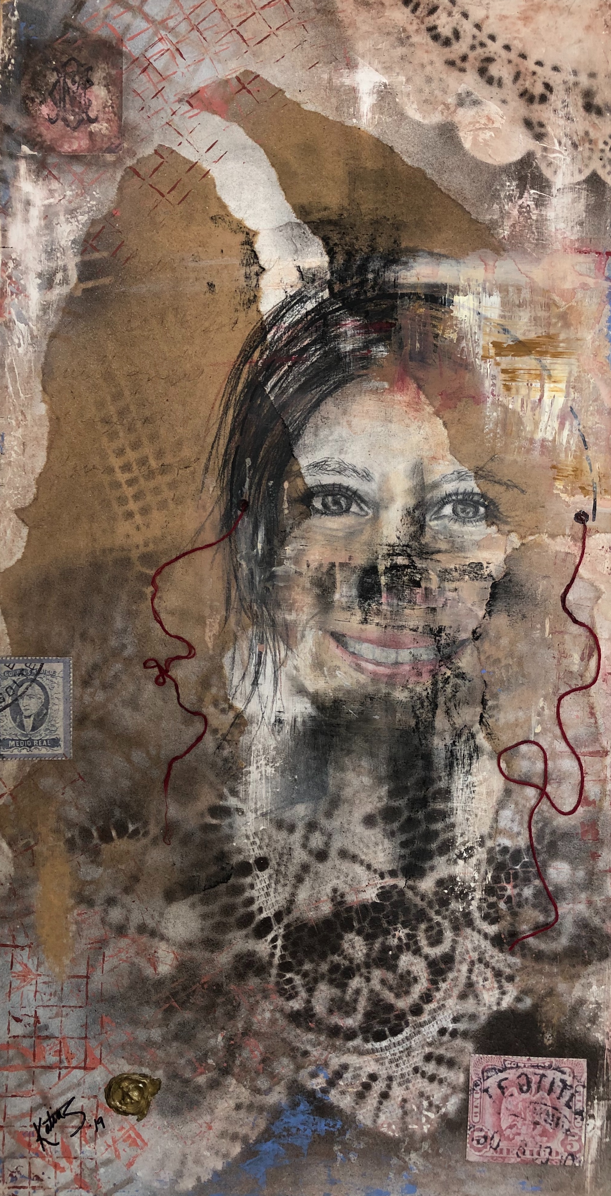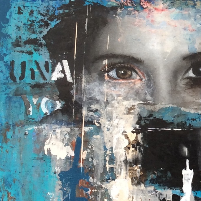 La mayoría de mis cuadros están hechos con innumerables capas de texturas, materiales y colores contrastantes, técnicas combinadas y hasta objetos que voy encontrando a mi paso que significan algo especial y la hacen muy original.